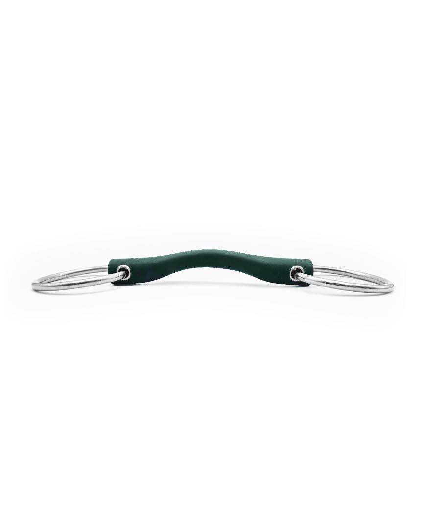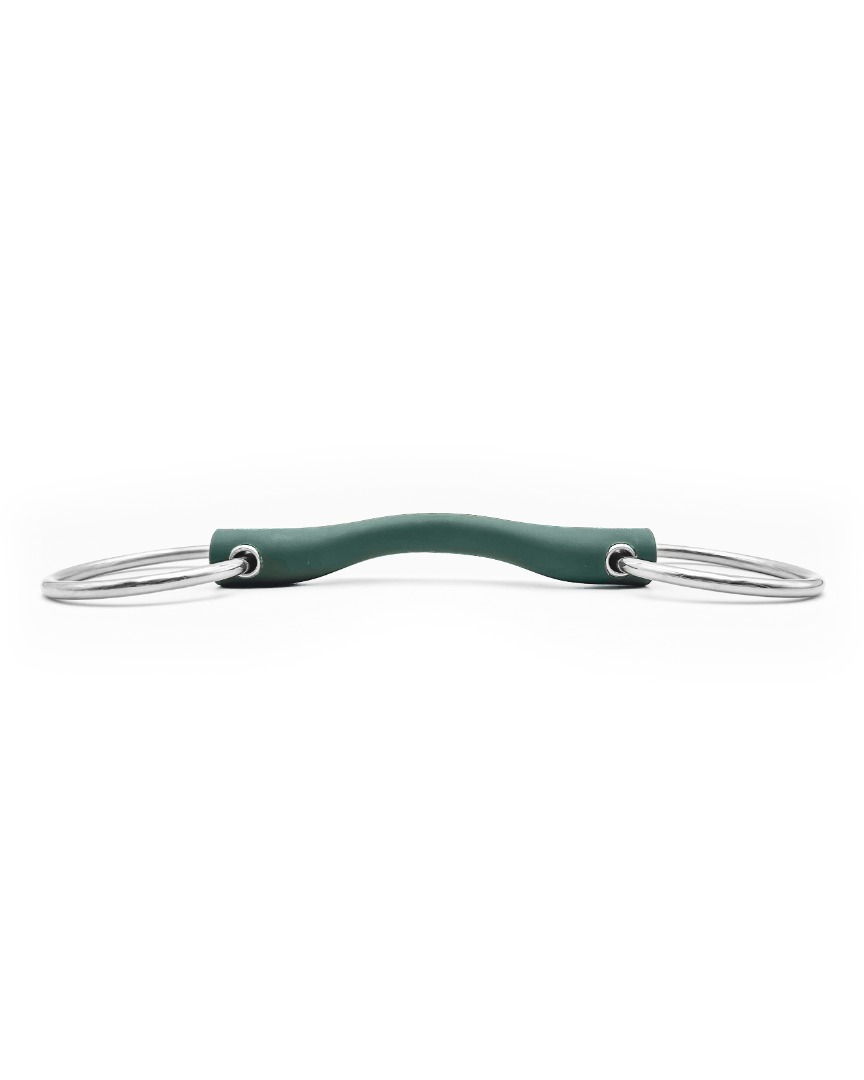 Dit mondstuk is iets dunner in het midden, waardoor het zachter op de tong ligt zonder overmatige druk op de lagen of het gehemelte te geven. De vorm, gecombineerd met het zachte materiaal, maakt dit bit een geschikte optie voor paarden met gevoelige lagen en een gevoelig gehemelte die onrustig kunnen zijn in de mond en aanleuning.
