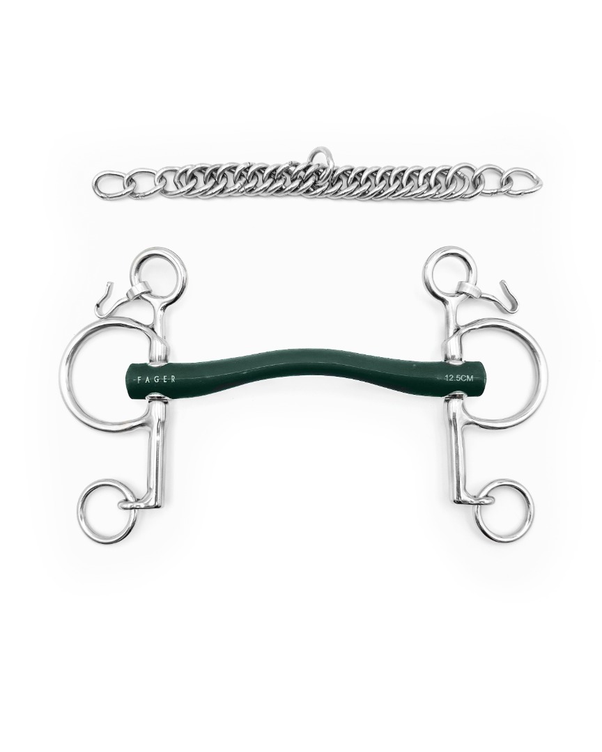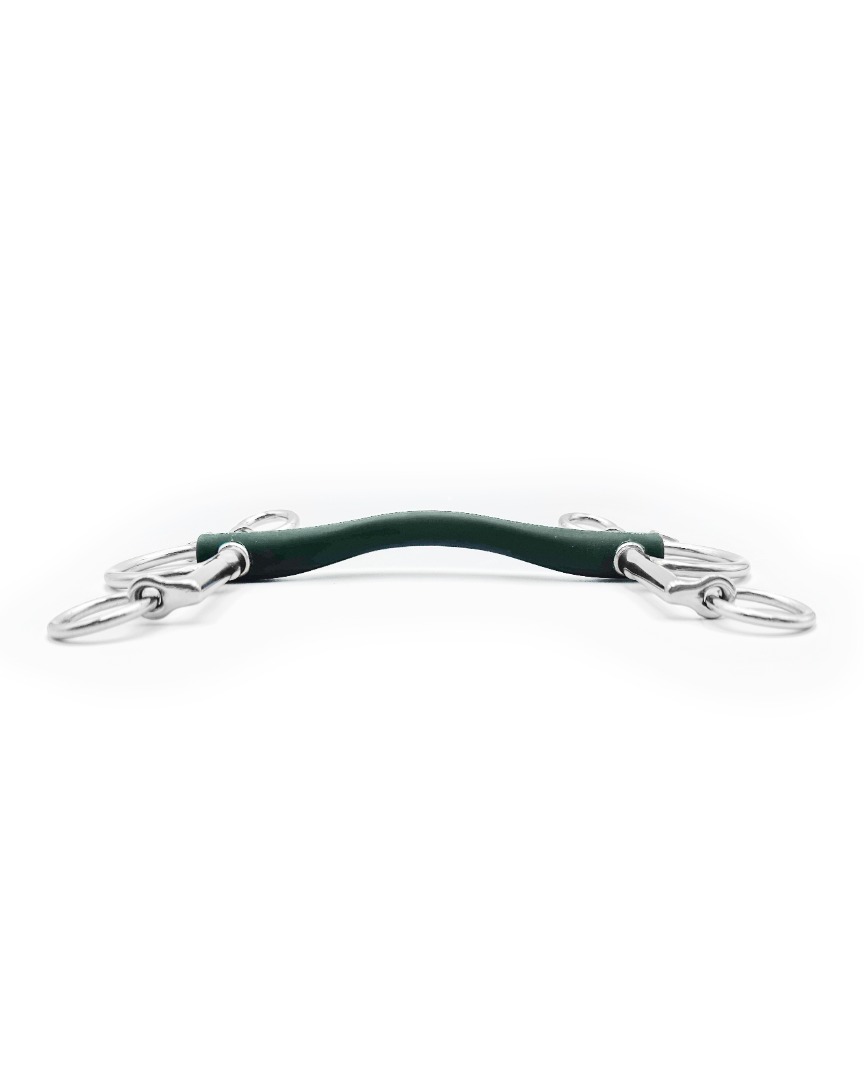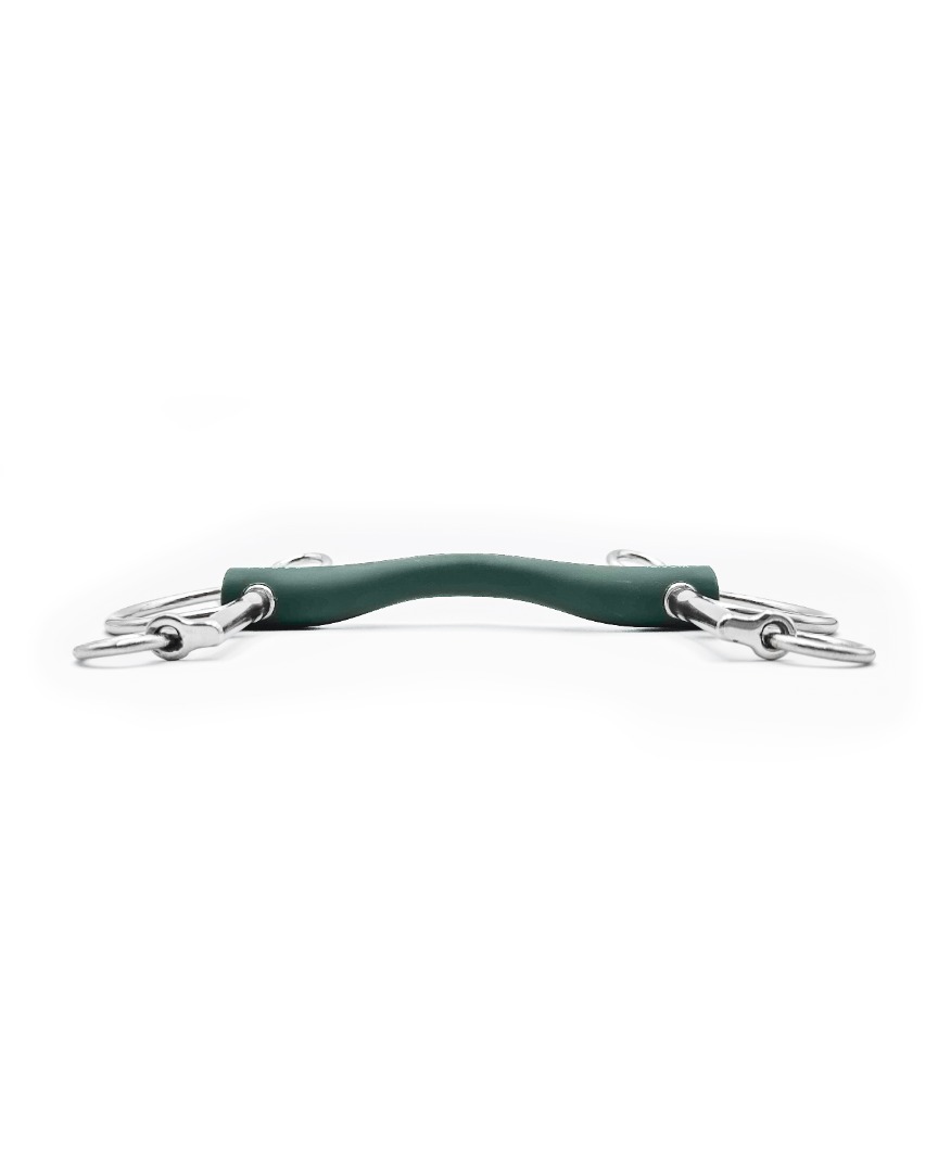 Dit mondstuk is iets dunner in het midden, waardoor het zachter op de tong ligt zonder overmatige druk op de lagen of het gehemelte te geven. De vorm, gecombineerd met het zachte materiaal, maakt dit bit een geschikte optie voor paarden met gevoelige lagen en een gevoelig gehemelte die onrustig kunnen zijn in de mond en aanleuning.