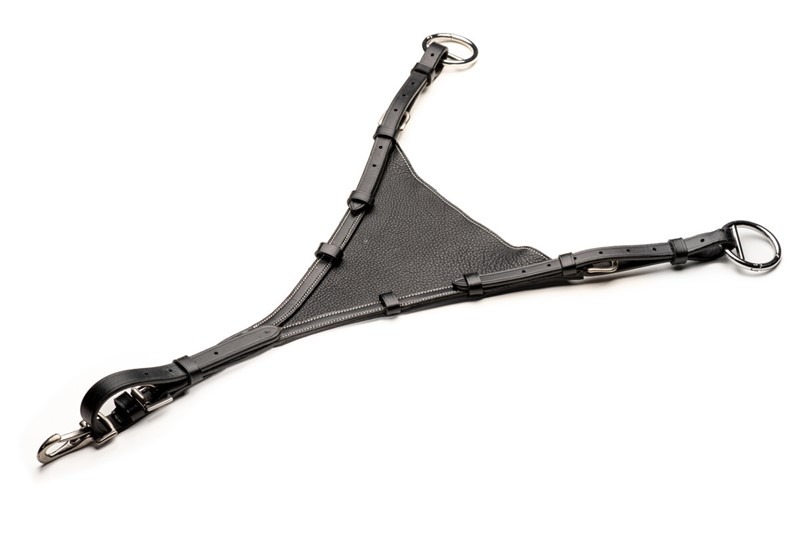 HFI gesloten martingaal voorvork van zacht leer. Voorkomt dat het paard met de voorbenen in de martingaal terecht komt. One size.