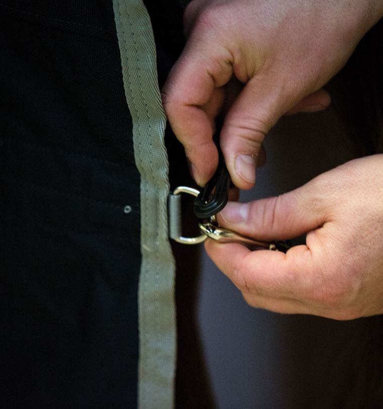 De liner wordt met klittenbandlussen aan de hals van de buitendeken bevestigd en aan de achterste hoeken vastgeklikt om te voorkomen dat de liner wegglijdt voor een veilige pasvorm. Dankzij de voorgevormde halslijn, de enkele klittenbandsluiting aan de voorkant en onze kenmerkende beenbogen voor bewegingsvrijheid is deze liner een logische oplossing voor vele paardeneigenaren.
