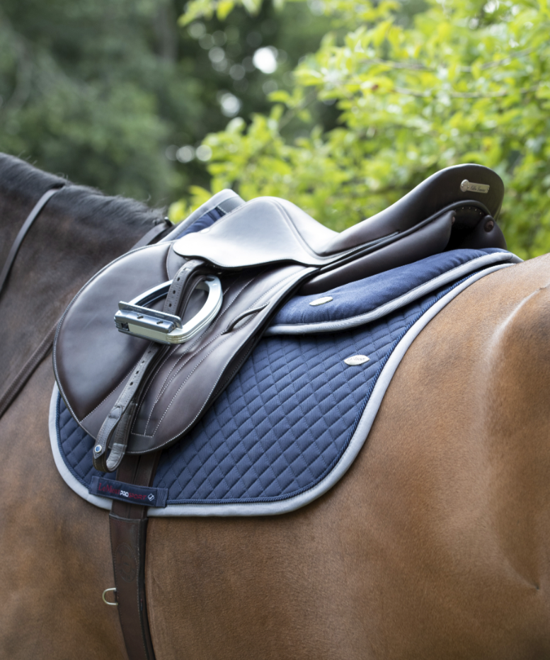 De ultrazachte binding, het sierkoord en de metalen LeMieux-badge maken dit een echt statement zadeldek, of het nu in de ring of thuis is.