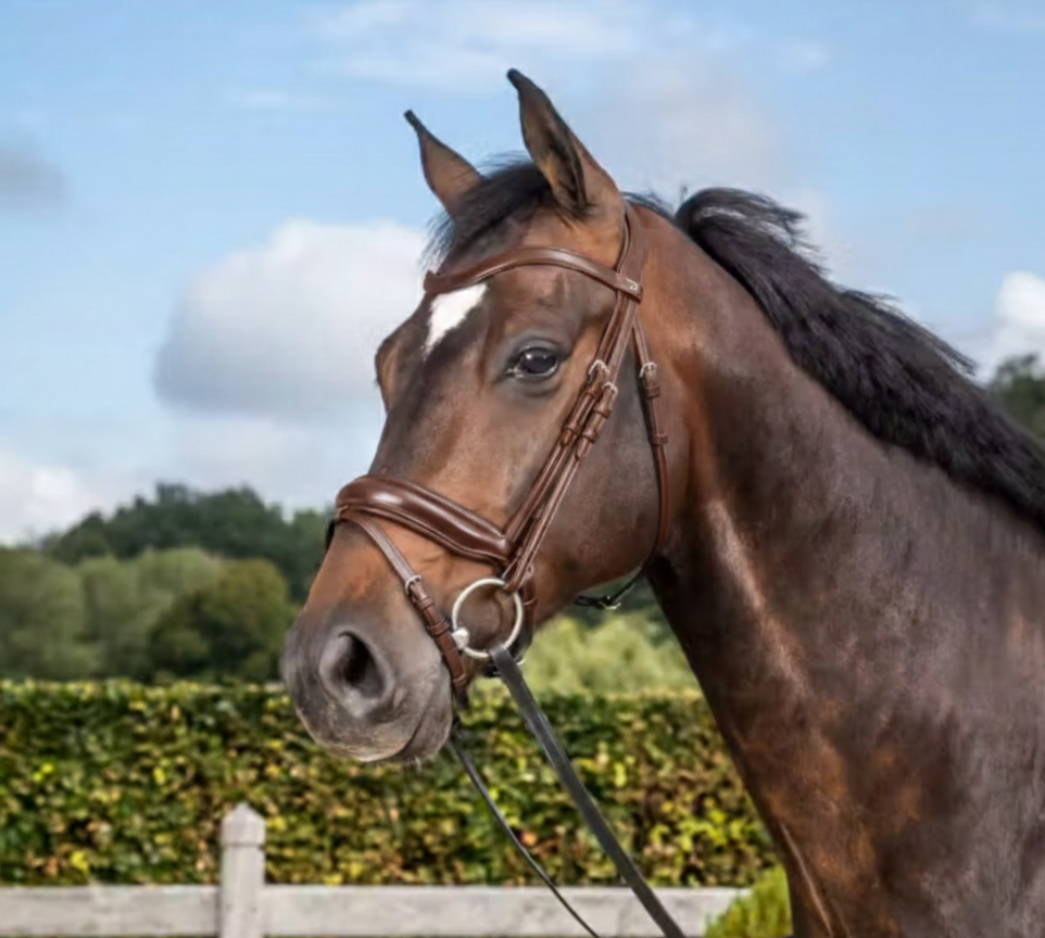De neusriem is voorzien van een Pull-back sluiting bevestigd op een gevoerde beschermende achterkant (13 mm).
