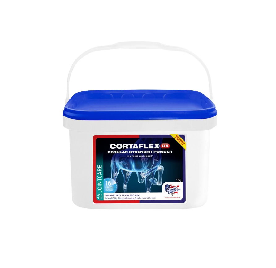 Voor een sterkere werking kan de Equine America Cortaflex Super Strength poeder of vloeibare vorm gegeven worden.